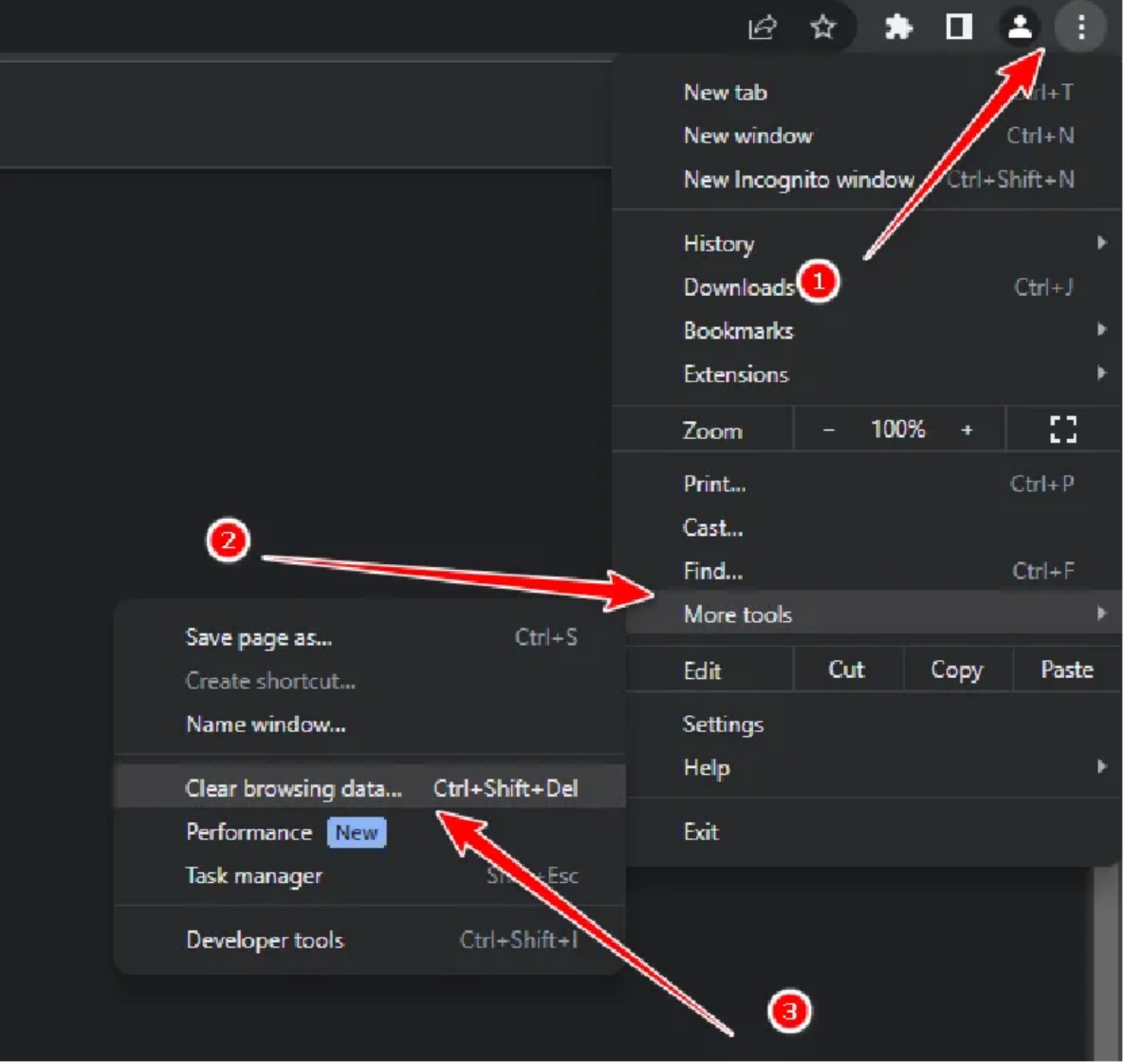 Step2: To clear your browsing history, use the drop-down menu to select "More tools."