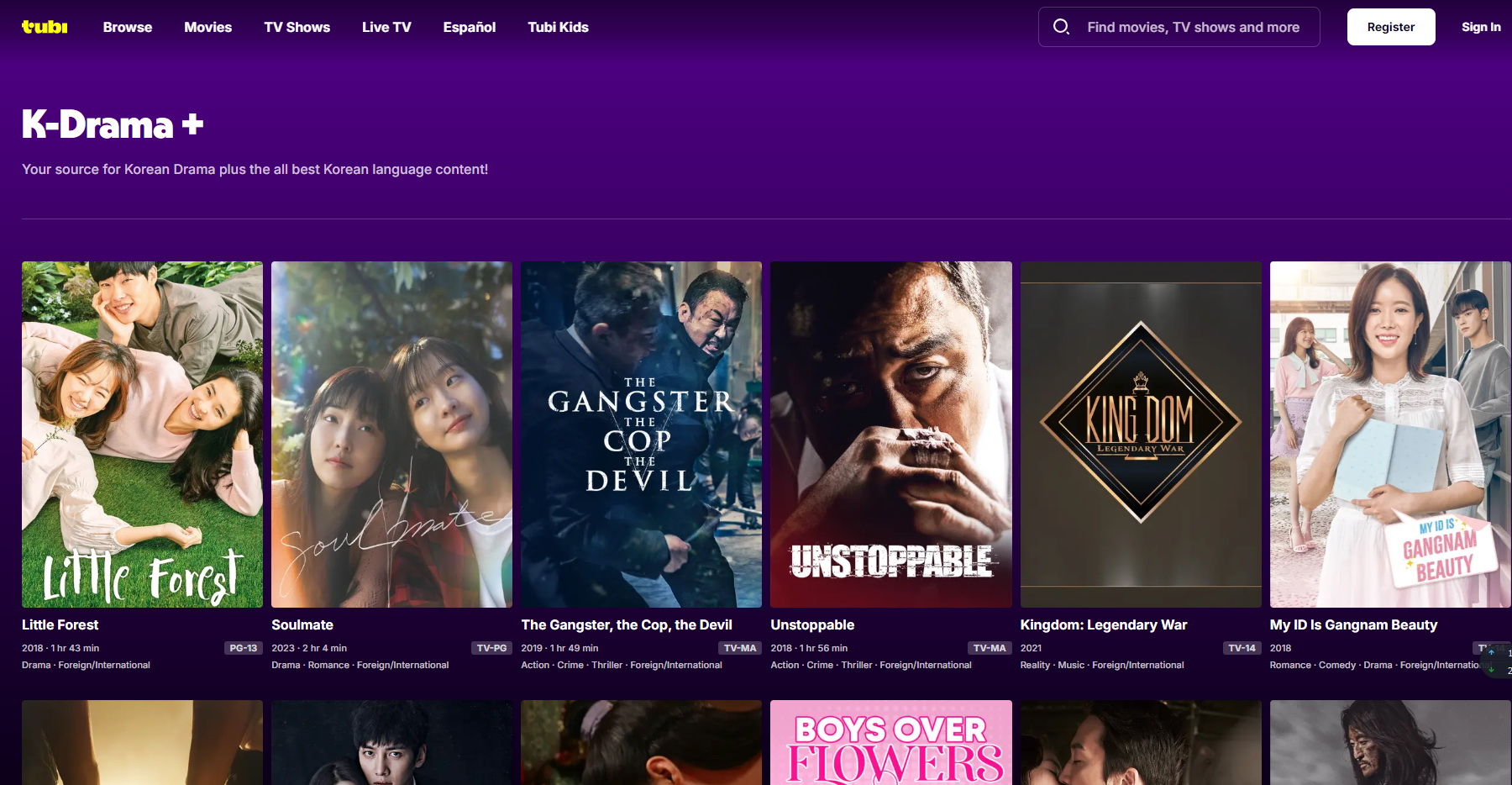 One of the leading video-on-demand service providers like Viki for streaming Asian drama is Tubi. It is a free and legal streaming service that offers hundreds of thousands of movies and shows. Tubi boasts a massive collection of popular and recent Korean titles under its K-drama+ category so that you watch most of your favorite Korean dramas online in HD quality.Moreover, serving as an ad-supported free platform, Tubi can be accessed without shelling out for a monthly subscription. It is one of the best Viki alternatives to watch Korean dramas.