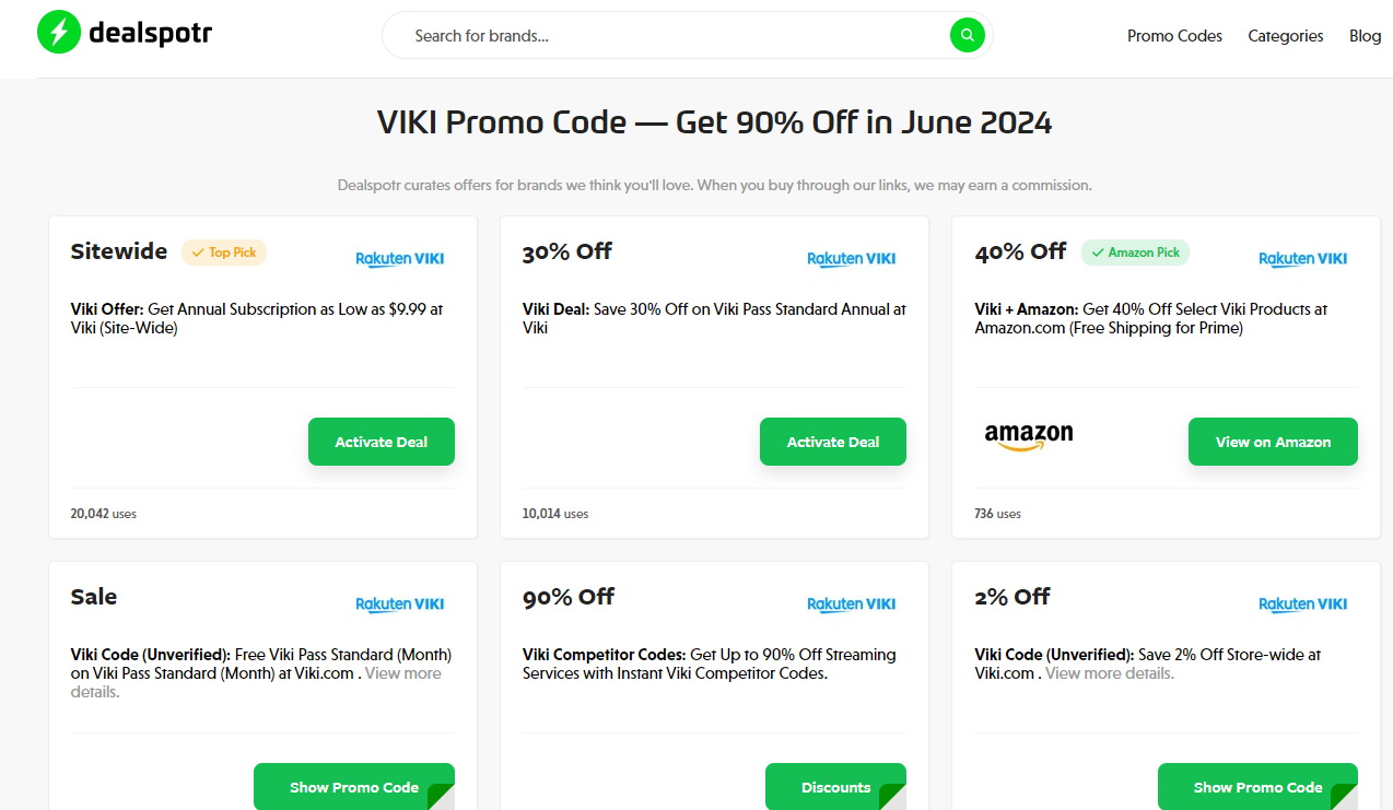In addition, Viki issues coupons and promotional codes to its customers occasionally. Some websites are offering Viki promo codes for users to get discounts when purchasing Viki subscriptions. Viki is currently offering dozens of coupons for discounts on their website and the best Viki coupon is for 40% off. To get exclusive discounts, you can go to Viki promo code websites like Dealspotr and Knoji, and then follow the steps below to use your coupon codes.