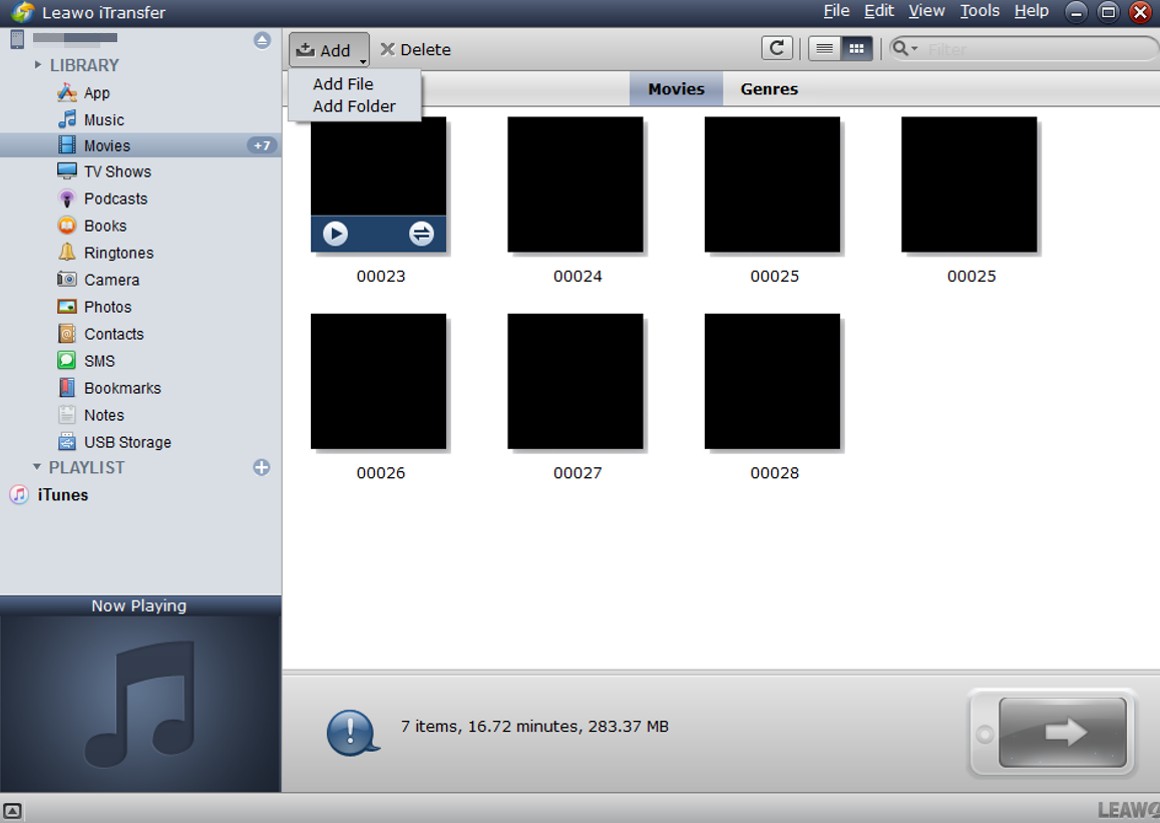 After you get the downloaded videos from Netflix, you can play back the videos with your computer media players like VLC or transfer to your iPad for on-the-go enjoyment. Leawo iTransfer can be used for the transfer task. It supports 12 kinds of files and can be used to transfer files among iDevices, iTunes and computers. Now let’s begin to see how to transfer downloaded MP4 videos to iPad from computer, and you can free download the software to have a try.