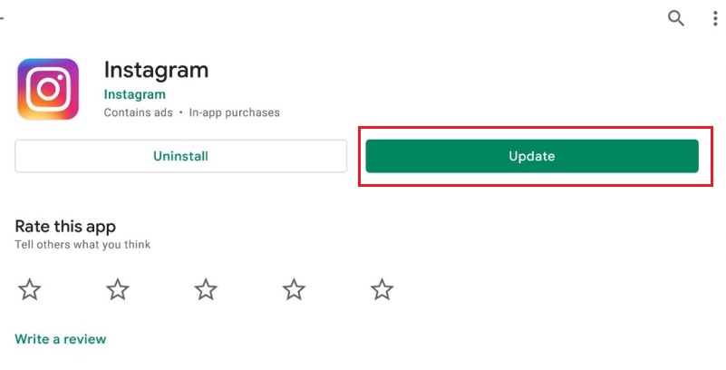 For Android: Go to Google Play store first. Then you can search for the Instagram app and tap the “Update” button if available to update the app. After updating, you can relaunch the app and try videos not playing on Instagram.