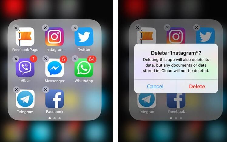 For iOS: You can directly press Instagram on the screen and then tap Delete to uninstall the app. Then you can go to App Store to install it again.