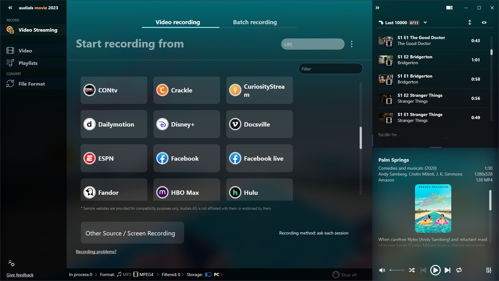 Last but not least, Audials is another wonderful screen recorder software tool that could help you record nearly all websites, including Crackle. The Crackle video streaming can be recorded and saved to your Windows computer in the video file formats MP4, WMV, AVI, 3GP or others. The Audials Windows software will tag the file of the movie or the episode of a TV series afterwards.