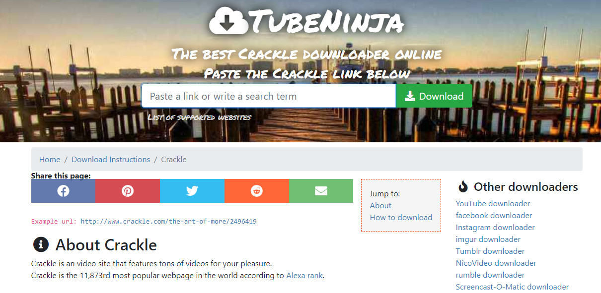 TubeNinja is a wonderful online Crackle downloader that could download videos from Crackle by simply pasting the link to the video. TubeNinja will provide you the download link and you can easily save it on your device. You can download and convert whole playlists from Crackle with a few simple clicks.