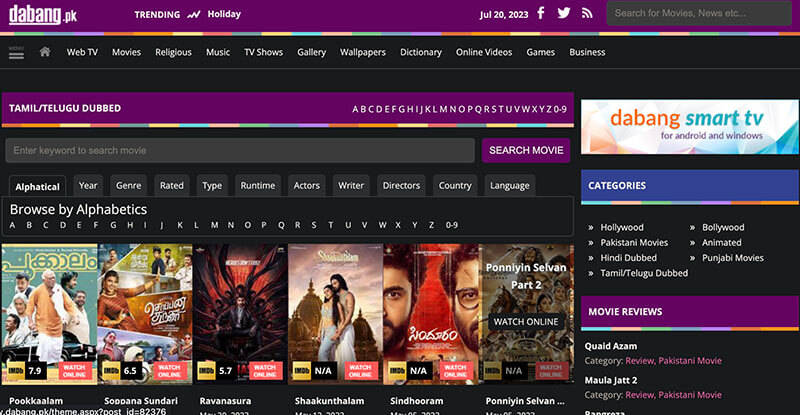 Offering a wide range of movies in Hindi, Tamil, Malayalam, Punjabi, and Hollywood titles, Dabang is a reliable TamilGun alternative that lets you download all movies in HD quality for free. With a user-friendly interface, Dabang is easy to navigate as you can see tons of the latest releases on the front page.