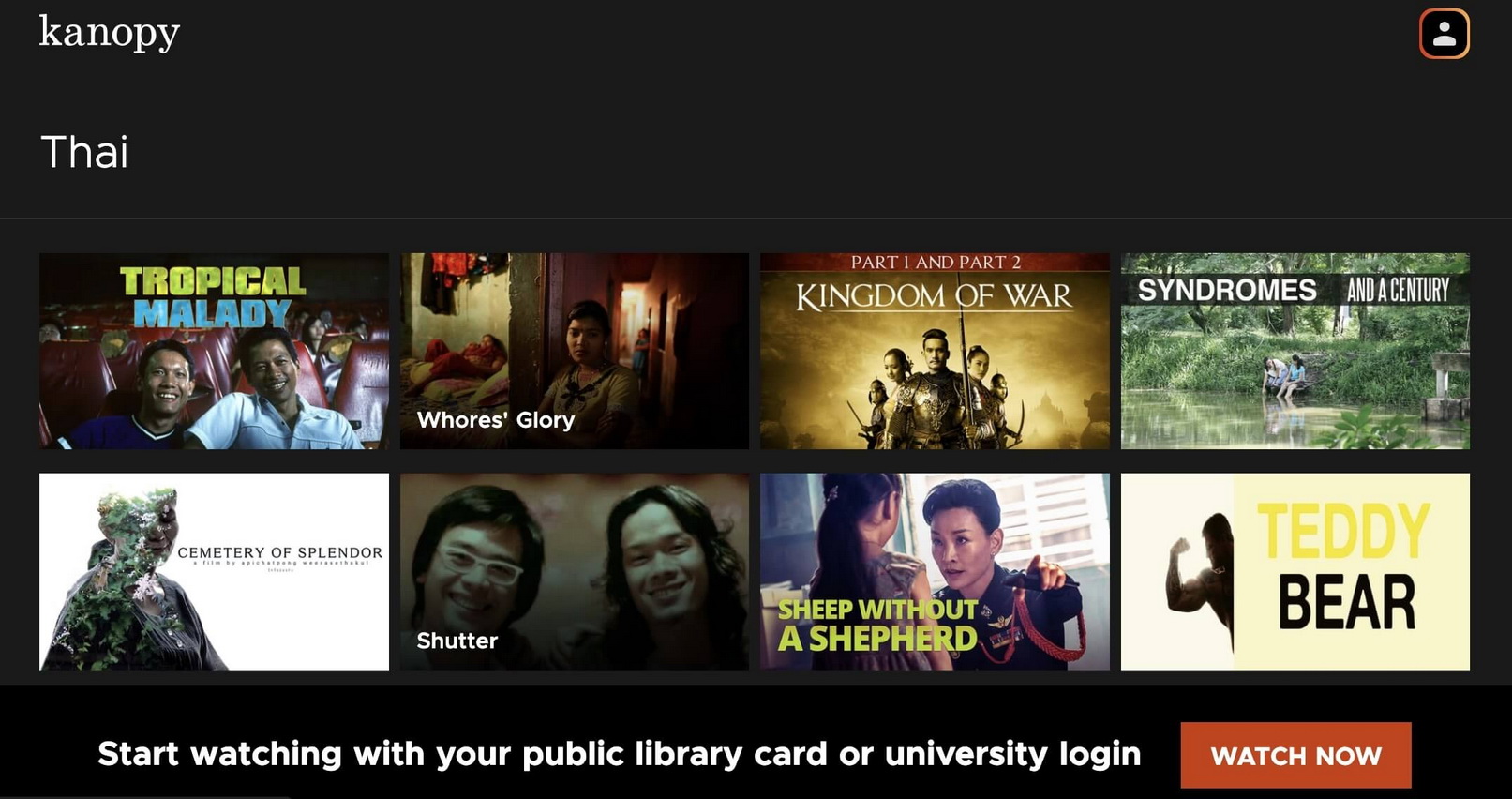 Kanopy is where you can watch a Thai movie legally because all content here is copyrighted. The site is also the best place to find independent productions for free. It is worth noting that some Thai movies can be steamed for free but you can use a library card or log in with your university to access more content.
