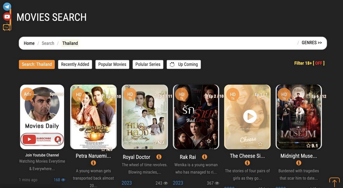 MoviesJoy is not only a solid choice for Thai movies but also for movies from across the world. You can find movies and TV shows from more than 30 countries here. Each Thai movie comes with 4 streaming links, letting you choose the one that works the best. Most importantly, the site is 100% free to use.