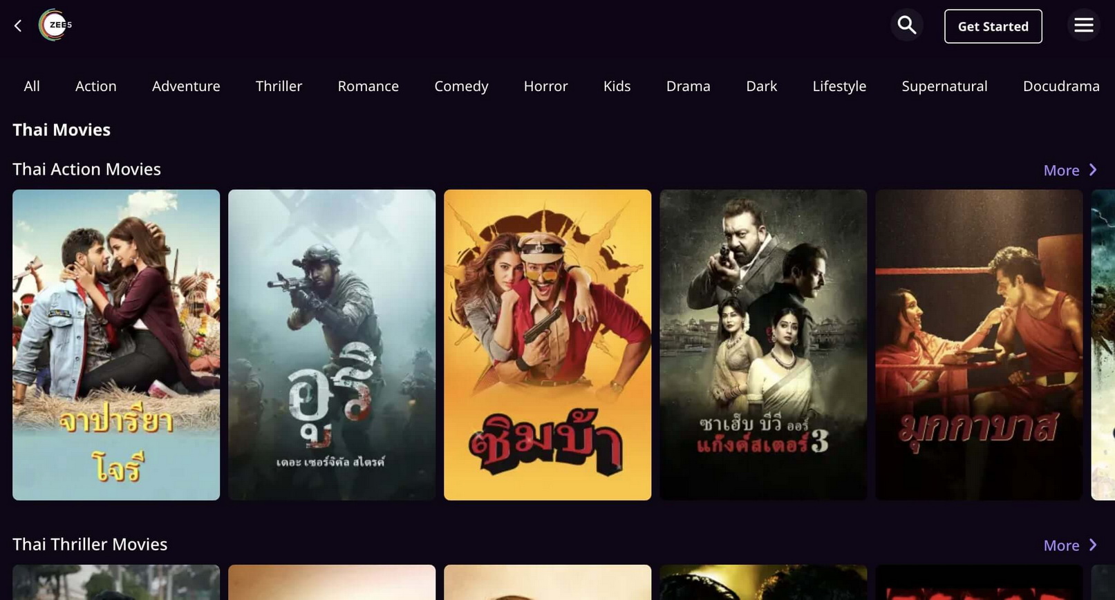 Zee5 is a popular streaming site based in India, which allows you to watch any Thai movie in HD quality. The site also provides movies and TV shows in Tamil, Punjabi, Telugu, and many more. If you are keen on live TV, the site has 90+ live channels available for streaming in various languages.