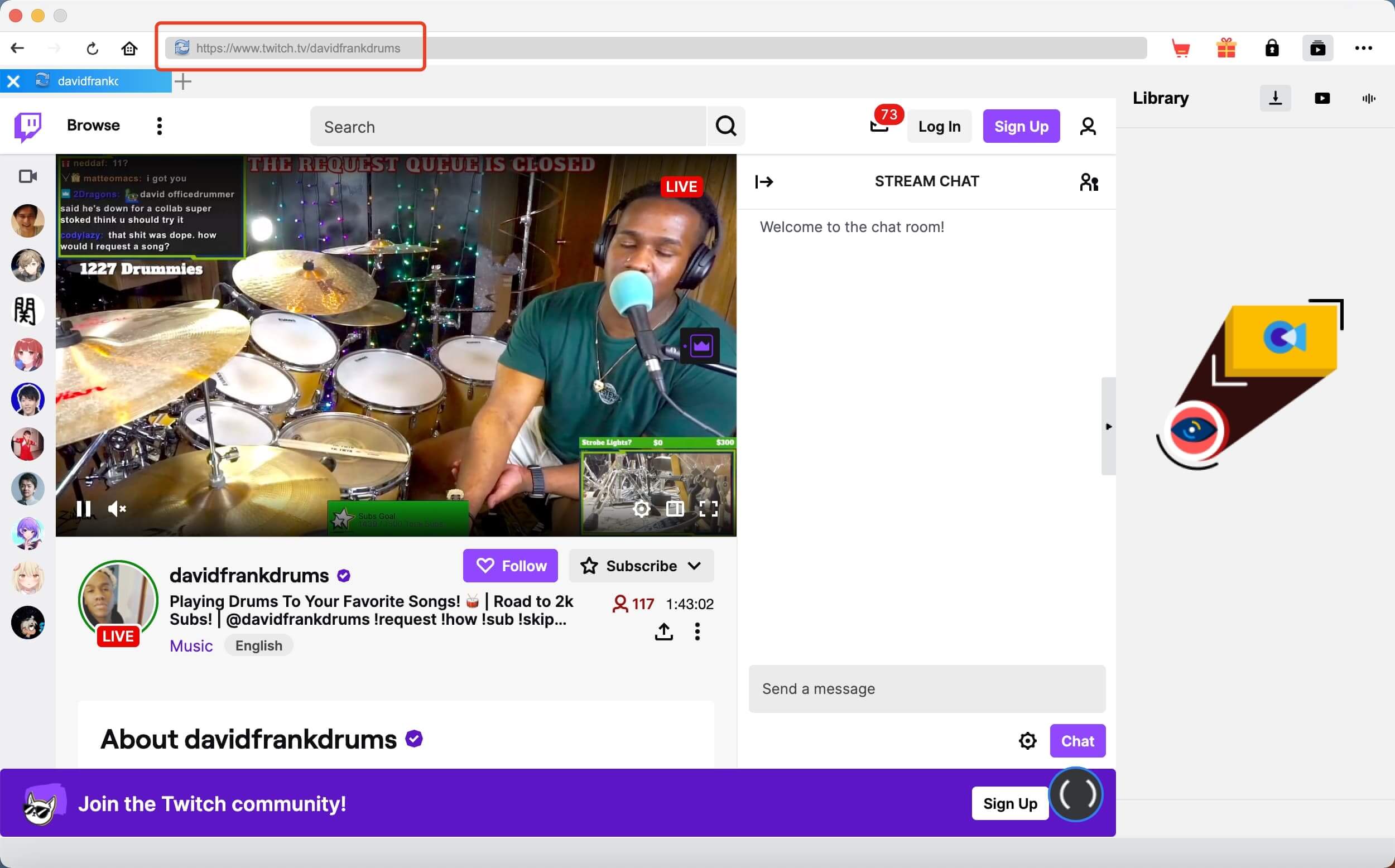 Locate the Twitch stream with the built-in browser. You can also paste the link of your own stream to the address bar after you fix the “Twitch not saving streams” issue.