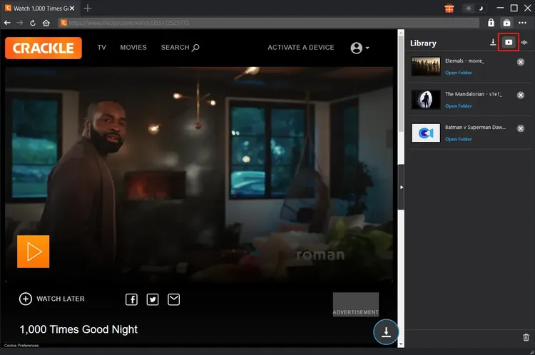 Once you have entered the playback page of target Crackle movie/TV show, click the download icon