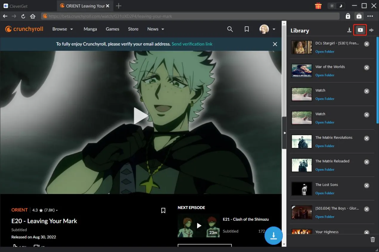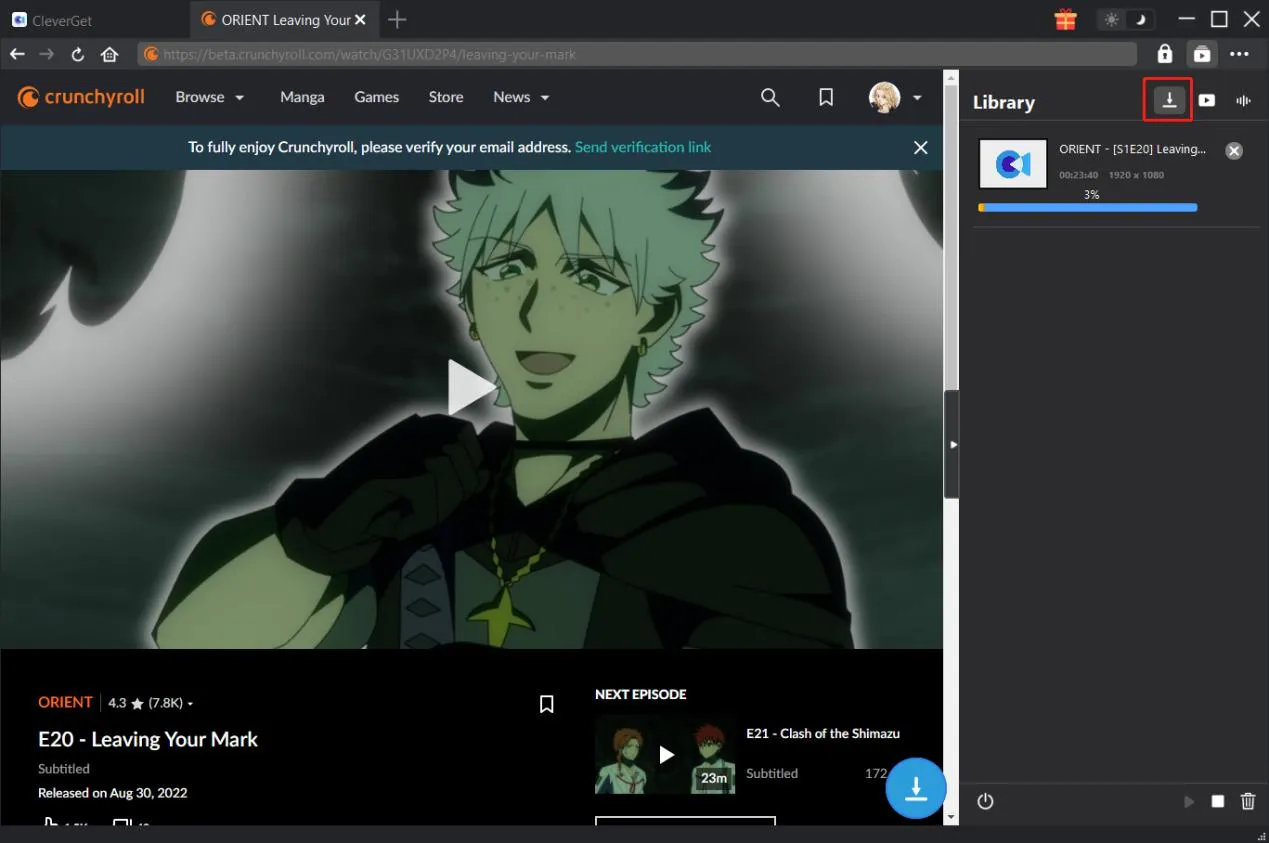 Note: Make sure the video you are going to downloaded is being played back before you let CleverGet parse the Crunchyroll video URL.