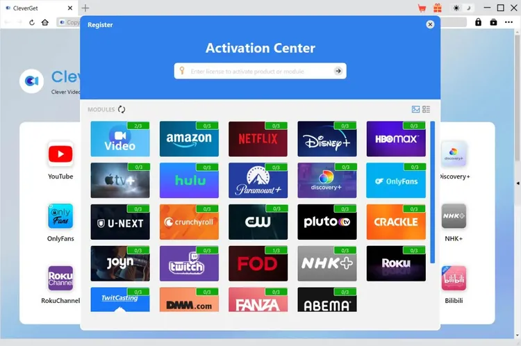 4. Or, click the "Activate" button on CleverGet program to enter "Activation Center". Choose the modules you want to purchase and then click "Buy Now" button. On the purchase page of CleverGet modules, choose the right module and validation and then complete the payment.