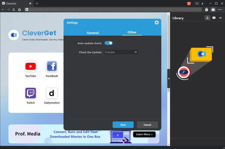 Open Other tap to enable/disable "Automatic Update" feature and set frequency that you suppose CleverGet to check for update within "Check the Update" button.