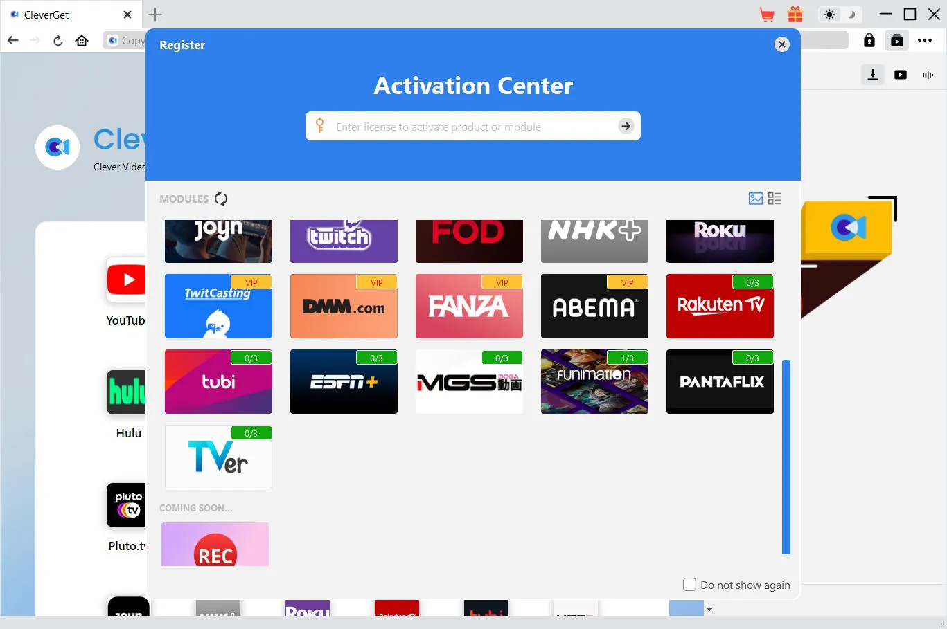 Note: Internet connection is required for activating CleverGet TVer Downloader and other CleverGet modules.