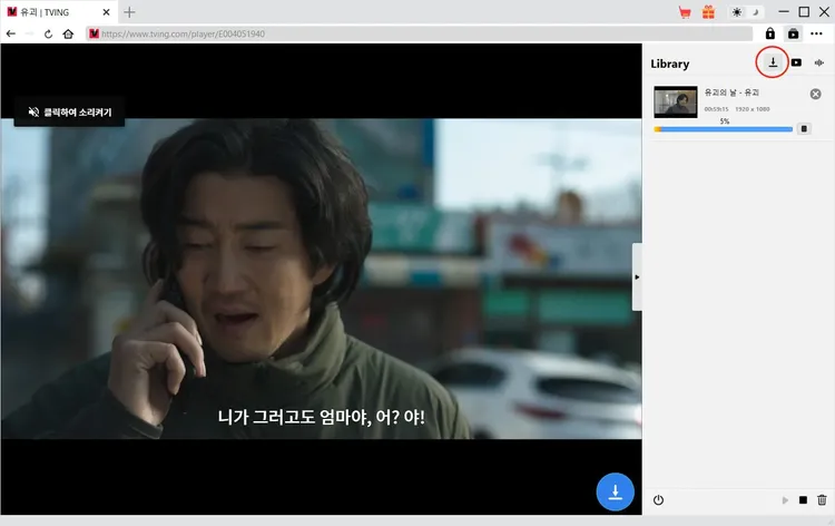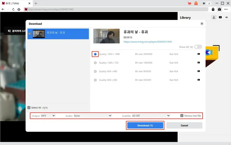 Click the download icon at the bottom of CleverGet on the TVING video playback page to let CleverGet parse the video URL. After successful parsing, CleverGet will pop up a "Download" window with all available download options. Choose the one you want to download, decide the output format, subtitle and audio track (if available), and then click the blue "Download" button to start downloading TVING videos.