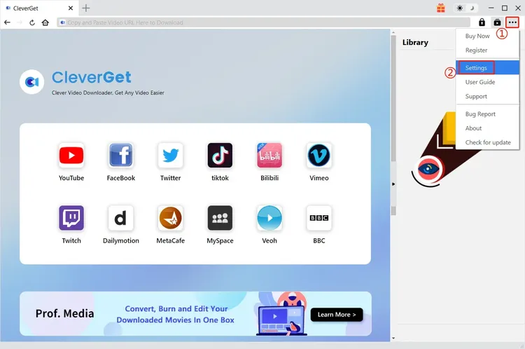 CleverGet is user-oriented and there are abundant settings for facilitating operation and improving user experience. Users can click three dots icon to look for "Settings" to enter settings panel. After all settings are finished, click "Save" to save all changes.