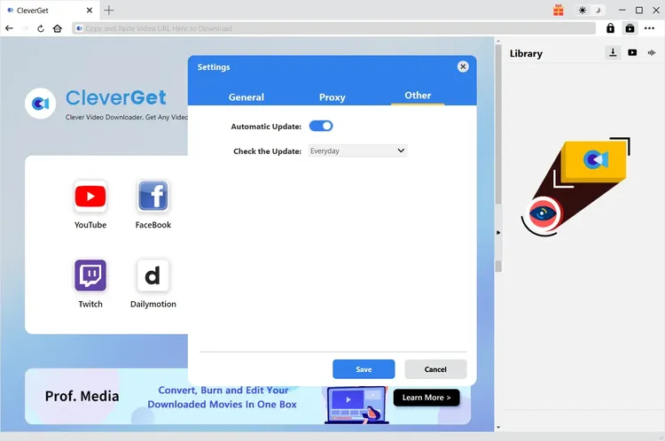 Other tap includes "Automatic Update" feature and you can click to open or close. If you enable "Automatic Update", set frequency that you suppose CleverGet to check for update with in "Check the Update".