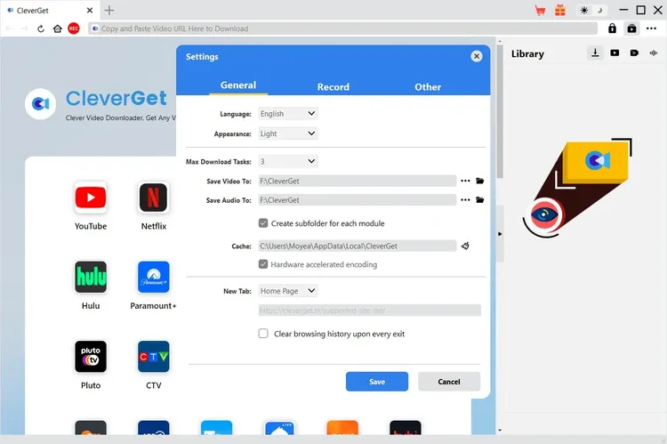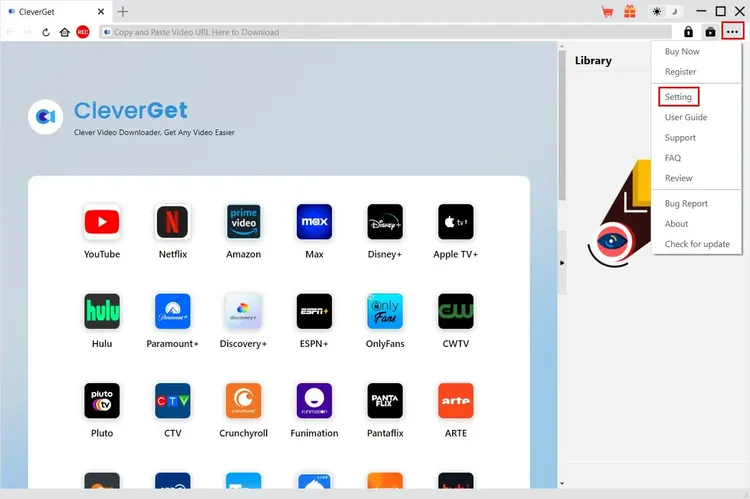 Also, CleverGet allows you to change default settings for better experience. Click the "Settings" option on the drop-down menu to enter "Settings" panel.