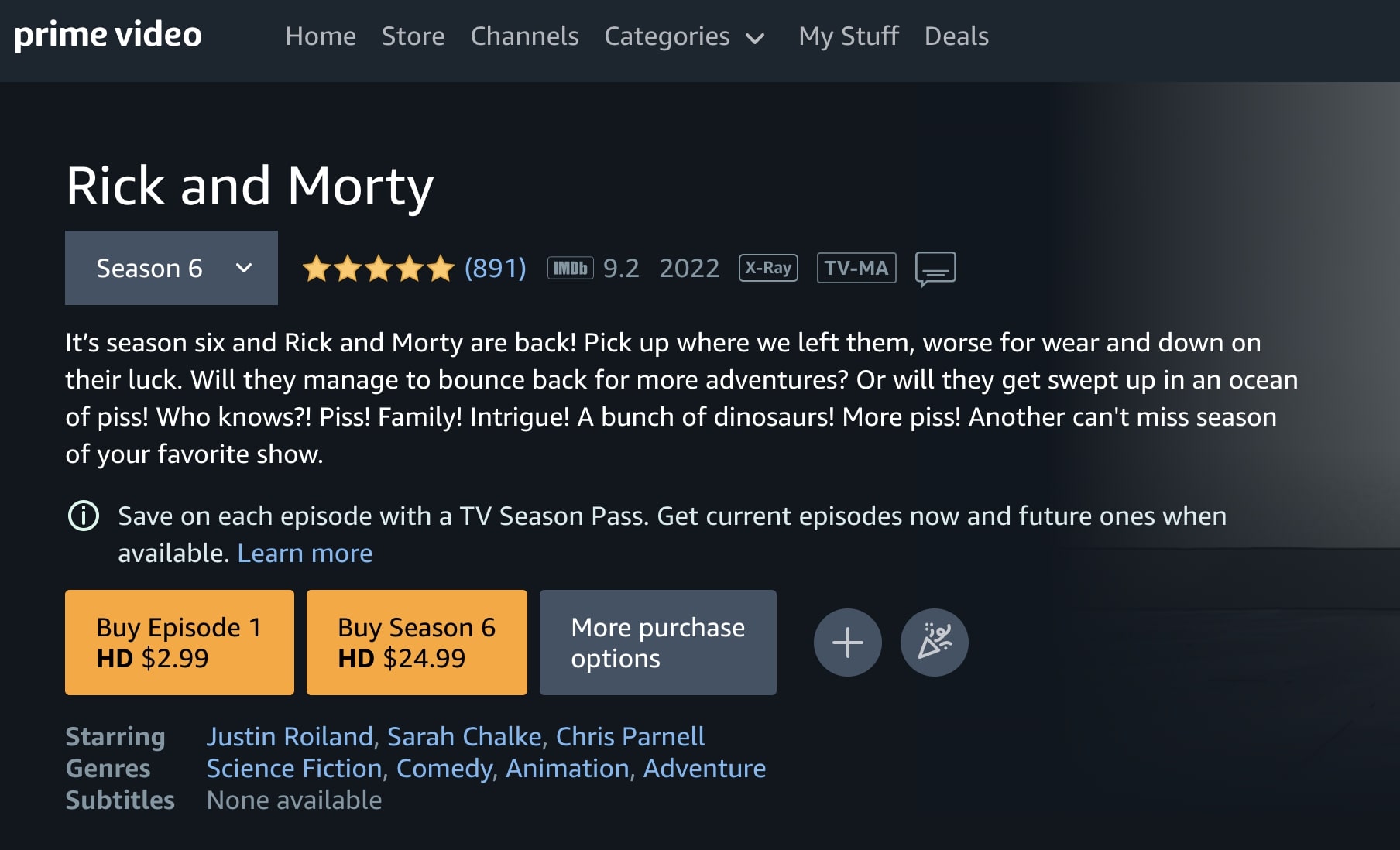 Amazon Prime is another platform to watch Rick and Morty online. You can watch the new episodes with a Prime membership. Each episode costs $2.99 and that’s $24.99 in total for the whole season. New members get a 30-day free trial, which allows you to watch Rick and Morty free.