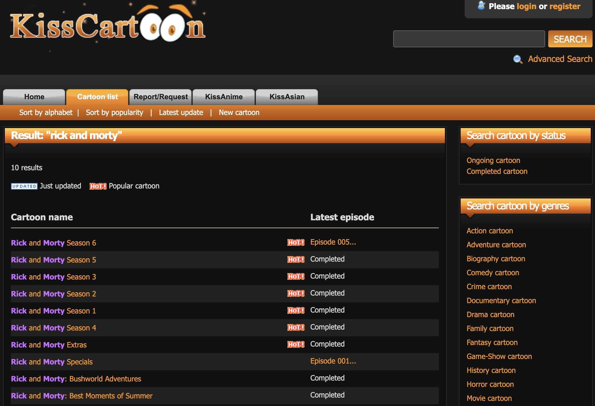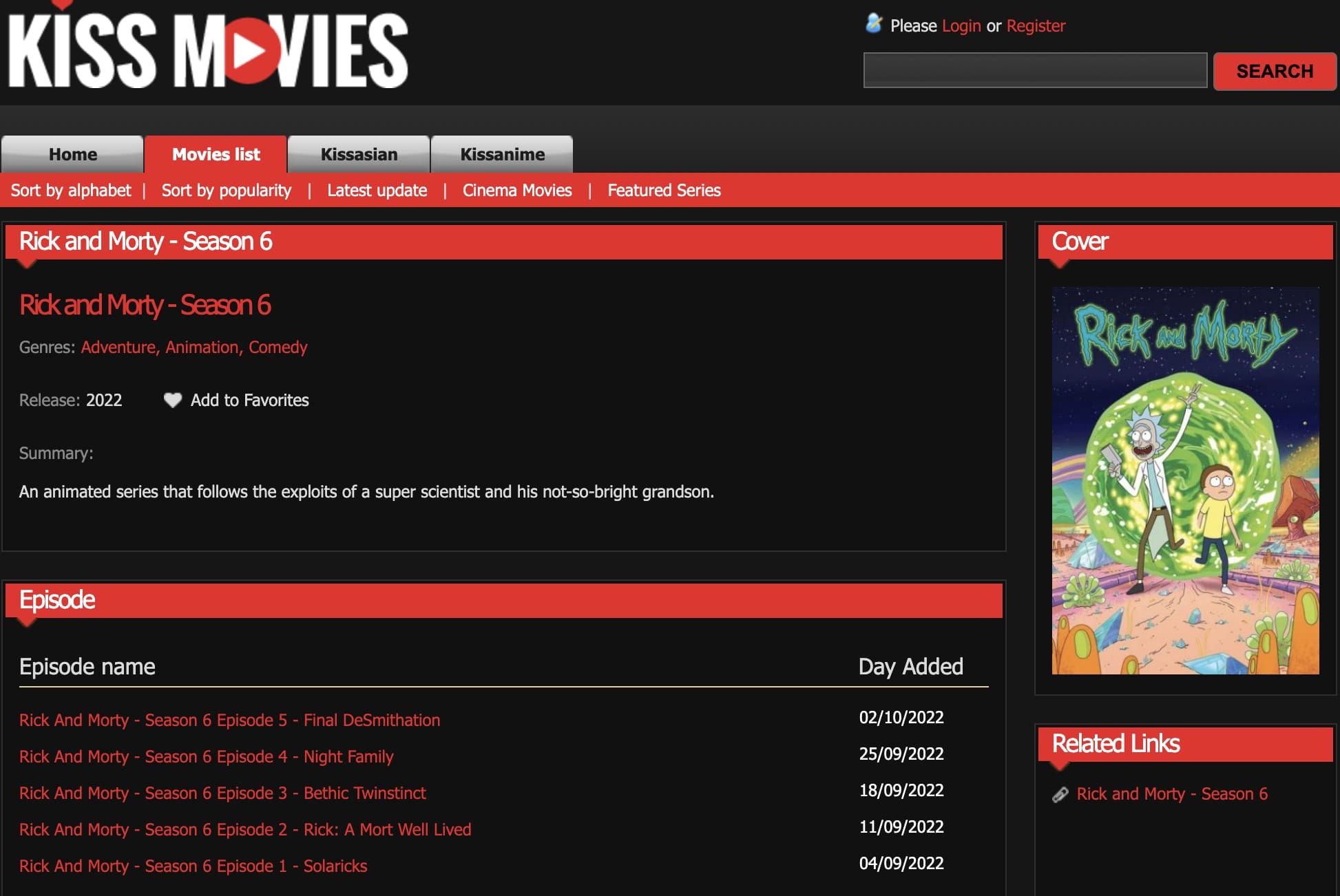 Kissmovies is a great option to watch Rick and Morty online free. Similarly, all seasons of Rick and Morty are available here with the latest updates on season 6. You can switch to a new server when the current server is not working, and there are multiple servers ready for use. Moreover, the page loading speed is pretty fast with minimal ads running.