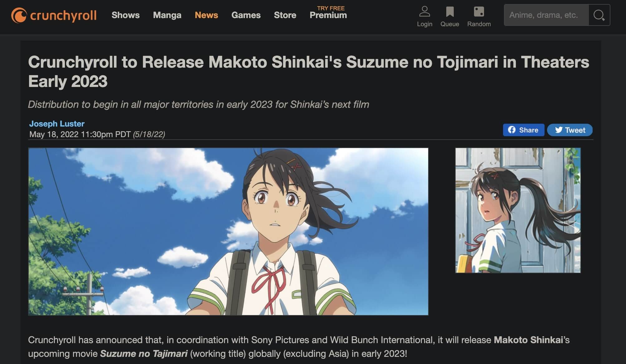 Part 1: Suzume No Tojimari Release Date