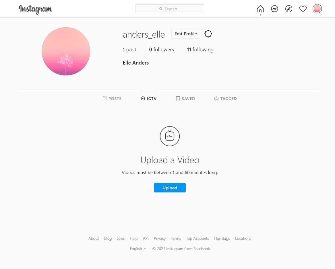 Step 1: Visit the official Instagram website in your browser. Click on the “IGTV” at the bottom of your personal profile page your profile information. Then, click the “Upload”.