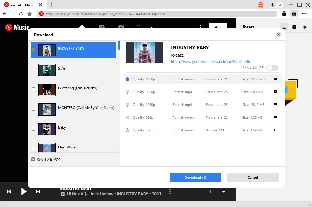 With ByClick, downloading YouTube music is as easy as breathing. The downloader will detect the music playing and offer you download options. Simply click on it and you can save your favorite YouTube music within seconds. The batch download feature is also great for downloading albums and playlists on YouTube music.