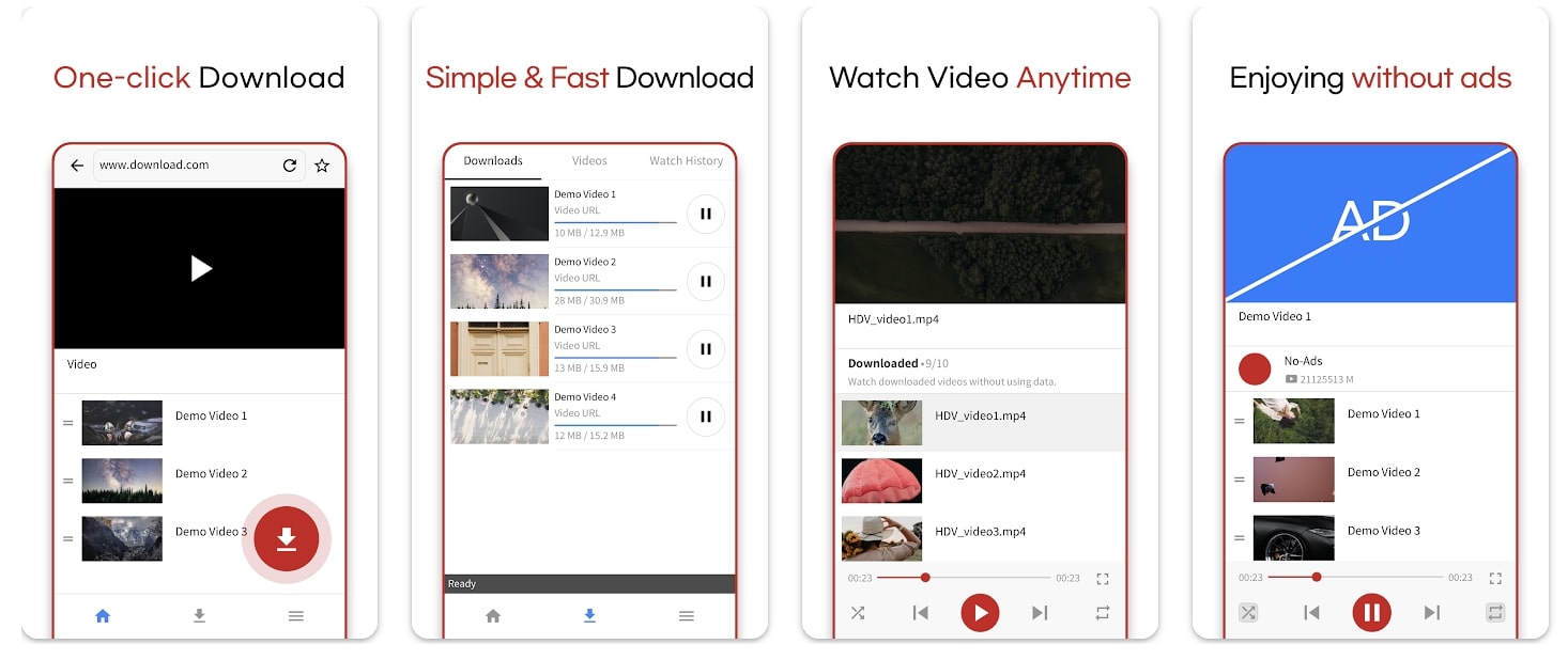 Supporting multiple websites, HD Video Downloader is a YouTube music downloader app for Android. The downloader allows up to 100 concurrent downloads and all major formats like MP3, MP4, MOV, WMV, MPG, AVI, etc. are supported. It could be one of the best choices to download high-quality videos/audio on Android.