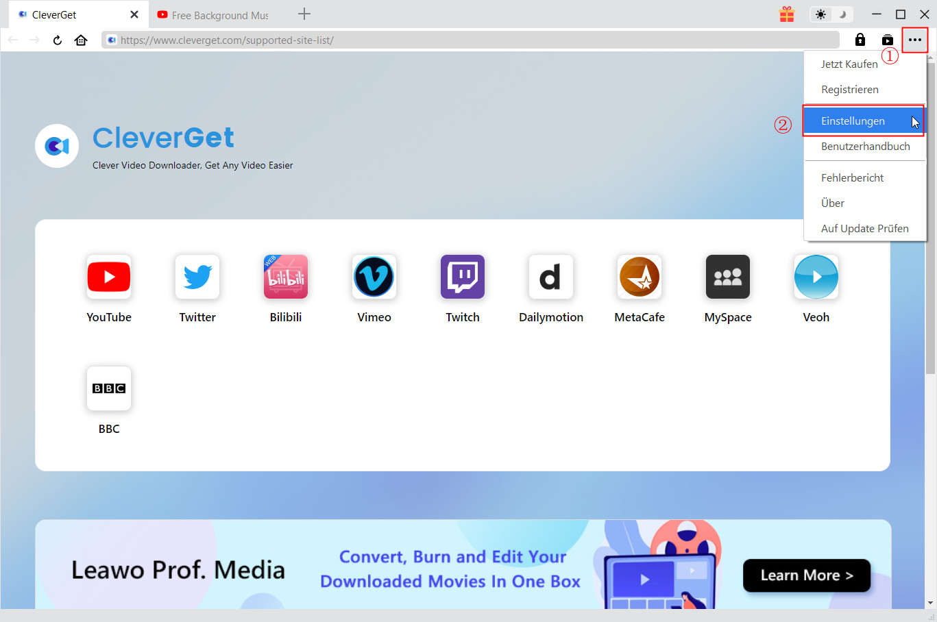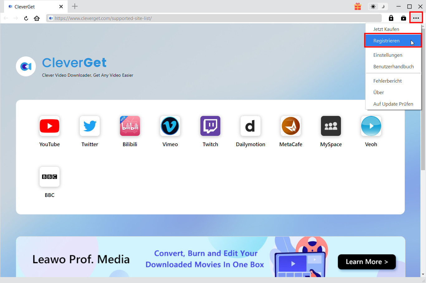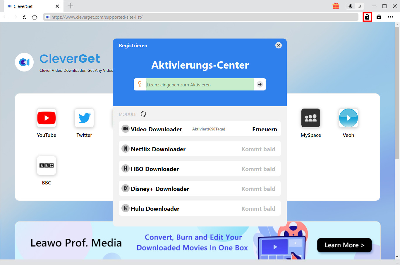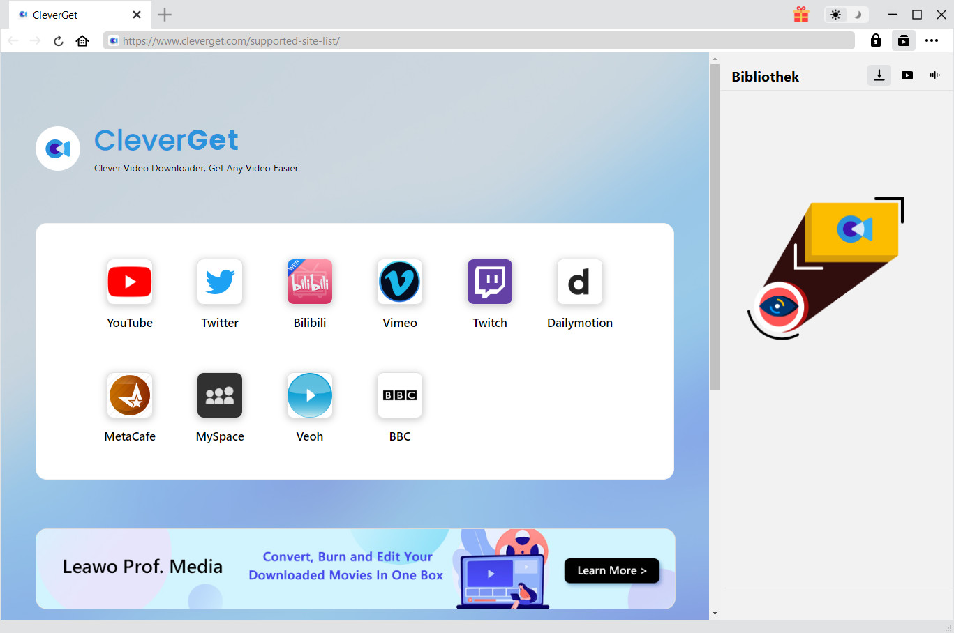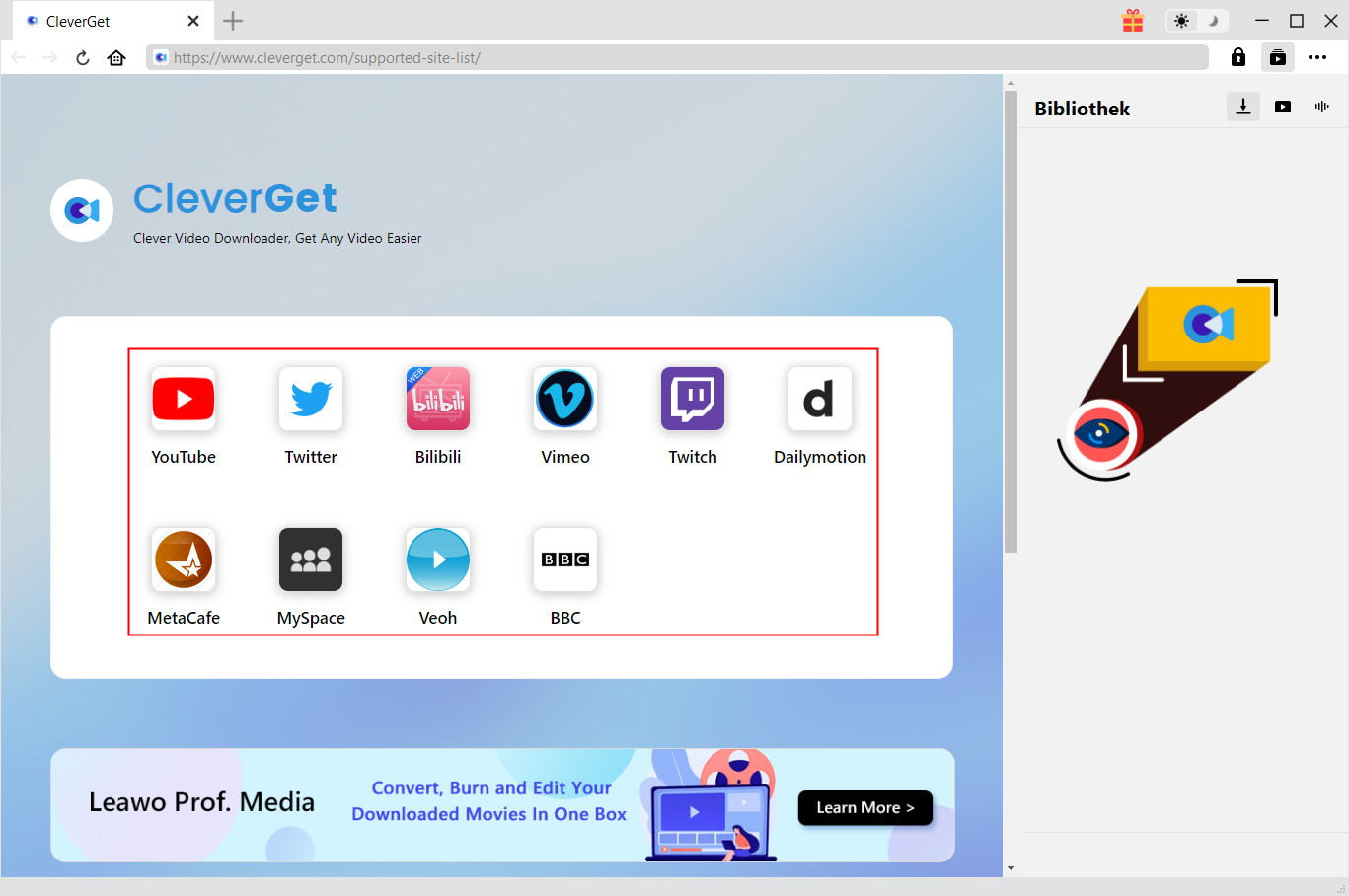 Vielen Dank für Ihre Unterstützung. CleverGet ist ein multifunktionaler Online-Video-Downloader, der Ihnen helfen kann, Online-Videos, Live-Streaming-Videos, TV-Sendungen, Filme usw. von über 1000 Video-Sharing-Webseiten herunterzuladen, wie zum Beispiel YouTube, Facebook, Twitter, Instagram, TikTok, Netflix, Amazon, Disney+, HBO Max, Hulu, usw.