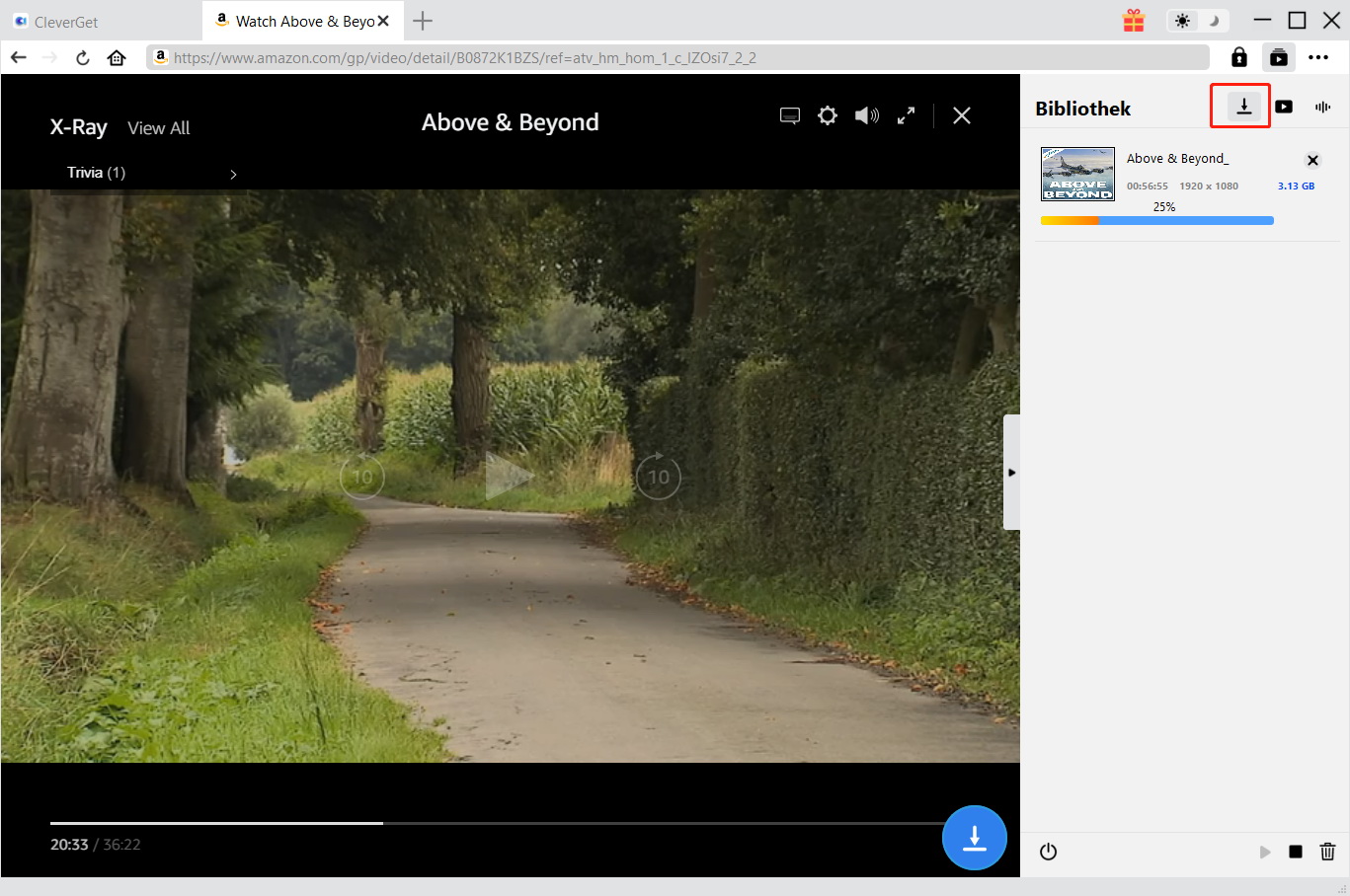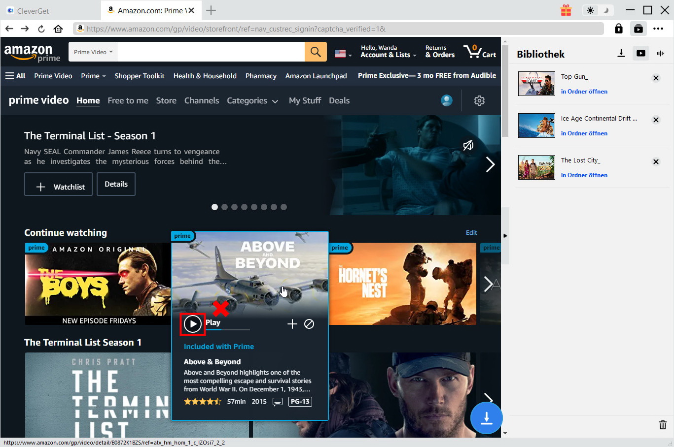 Hinweis: Für ein erfolgreiches Video-Analysieren sollten Sie die Detailseite von Amazon-Videos aufrufen und dann auf "Abspielen" klicken, bevor Sie CleverGet mit dem Analysieren beginnen lassen. Bei anderen Streaming-Services können Sie direkt auf der Startseite auf die Schaltfläche "Abspielen" klicken, um die Wiedergabe und das Analysieren des Zielvideos zu starten.