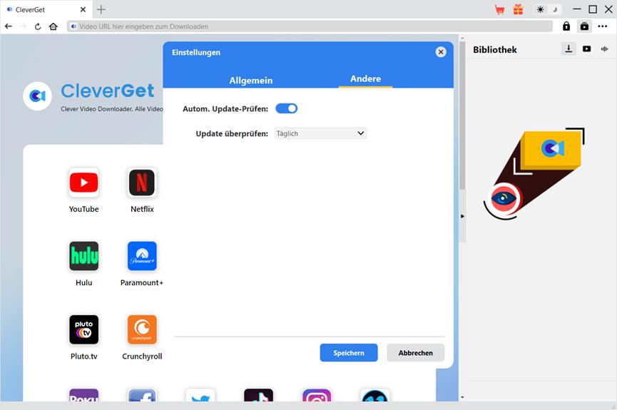 Öffnen Sie die Registerkarte "Andere" und stellen Sie die Häufigkeit ein, mit der CleverGet nach Updates suchen soll (Schaltfläche "Update überprüfen").